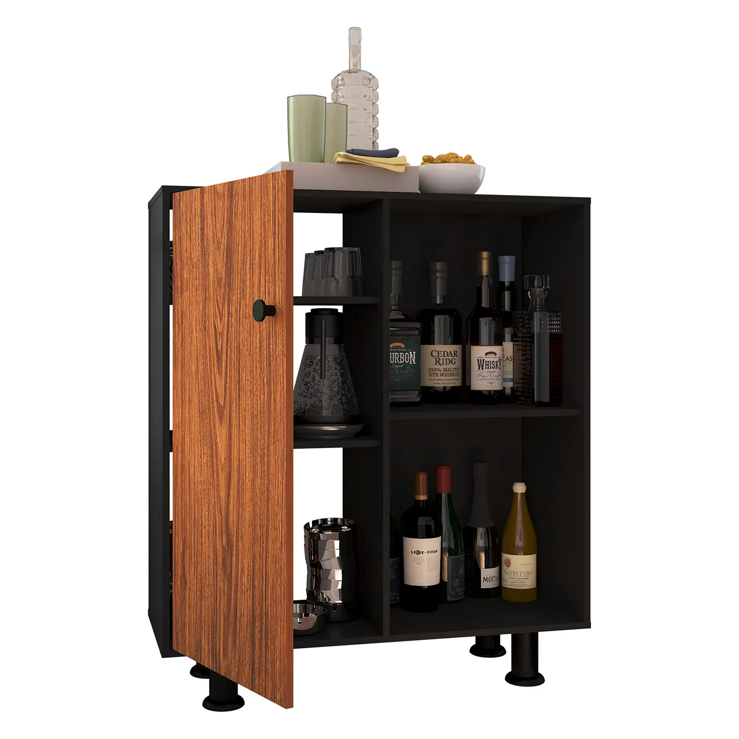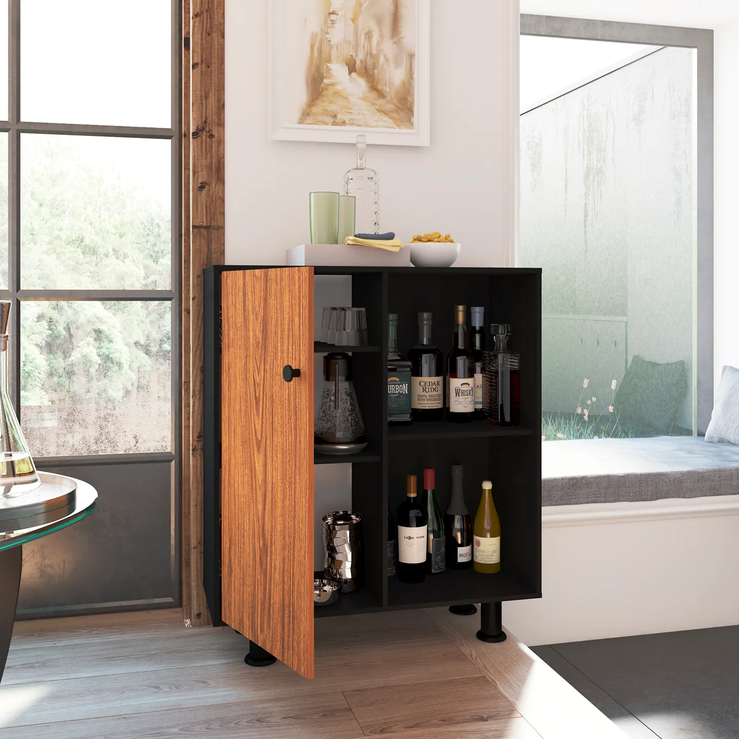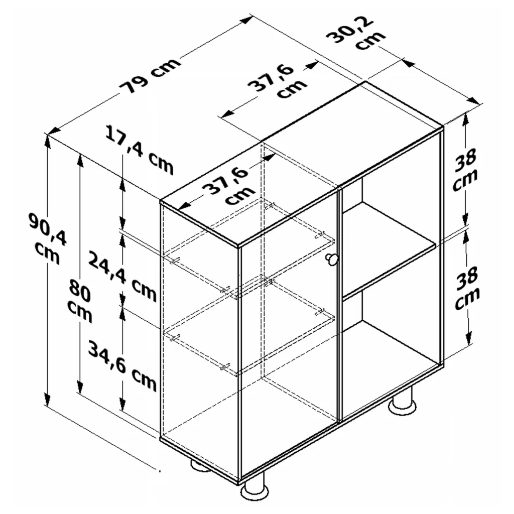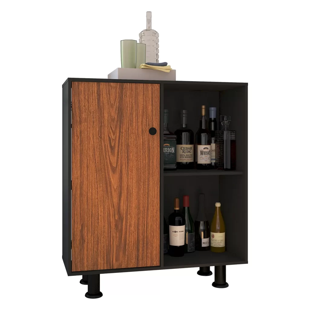 Cómoda PLAYCON modelo Lima, con puerta y repisas abiertas, patas metálicas y jaladera resistente. Medidas 90.4 x 79 x 30.2 cm. Color Gris/Negro.