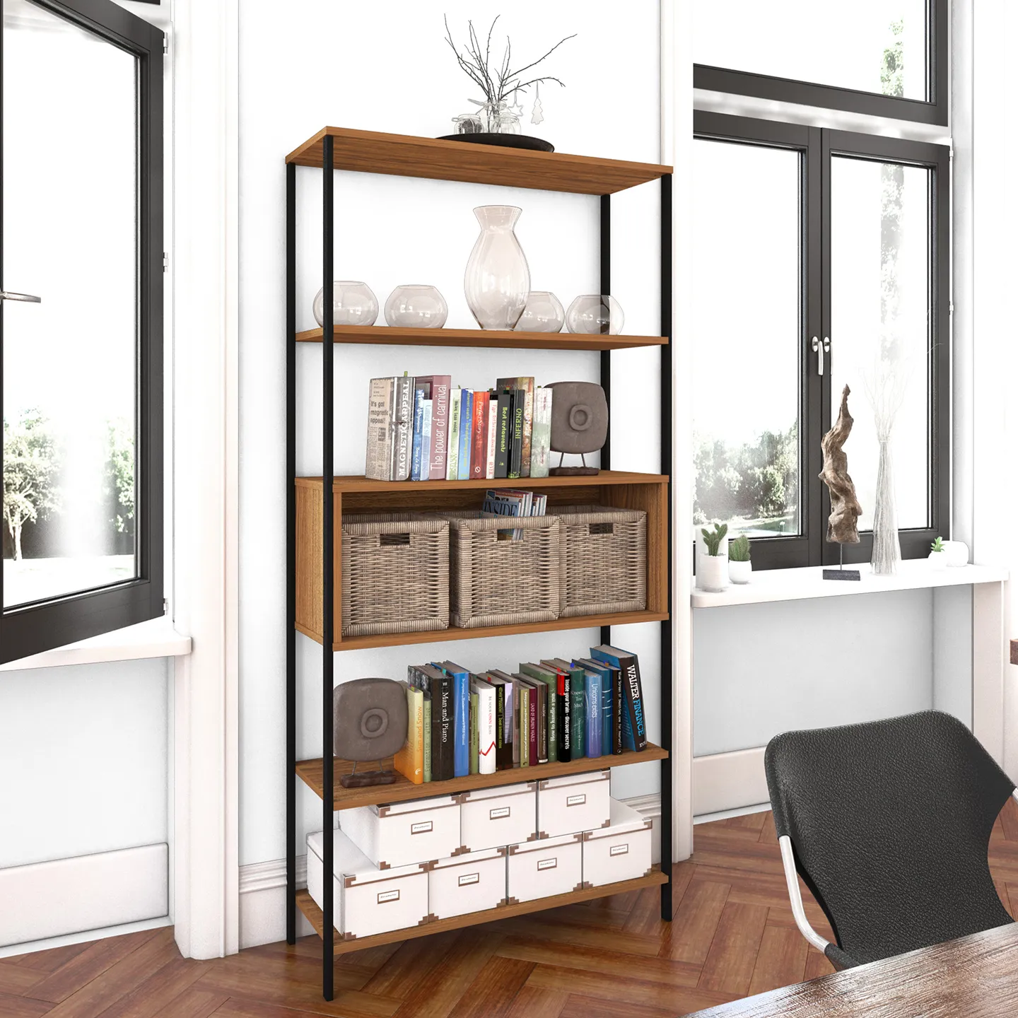 Estante − Toledo. Estante Organizador Multiusos, Estantería de Metal y Madera de Ingeniería con 5 Espacios Organizadores