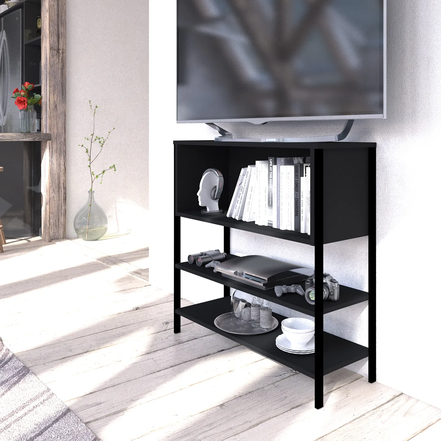 Su profundidad es ideal para espacios pequeños. Y es tan fuerte que puede aguantar una tele.