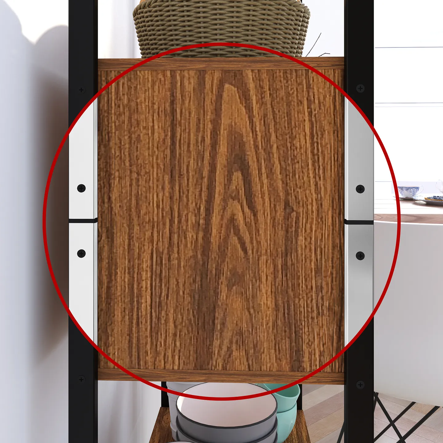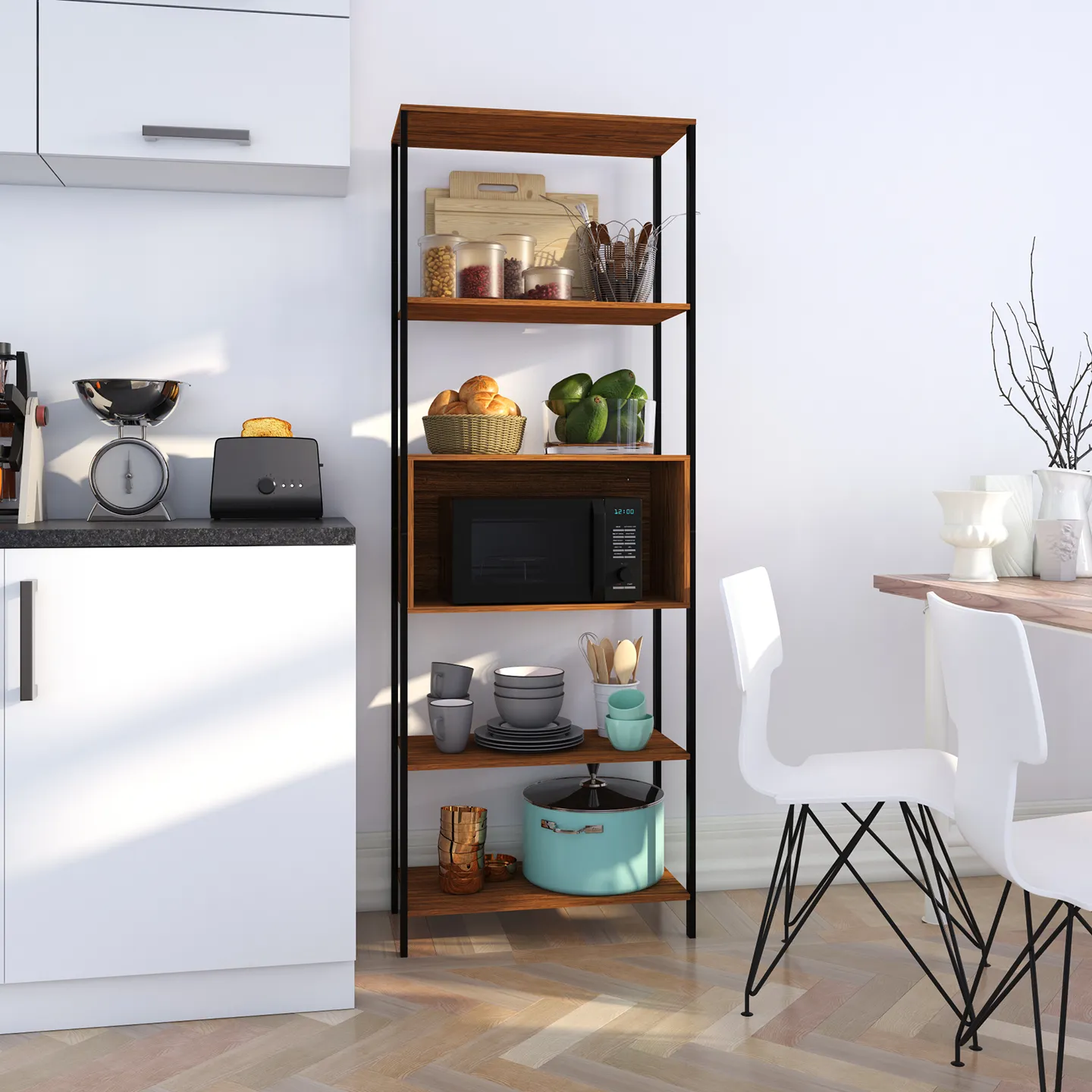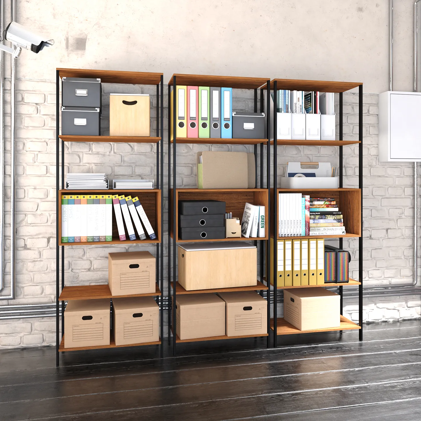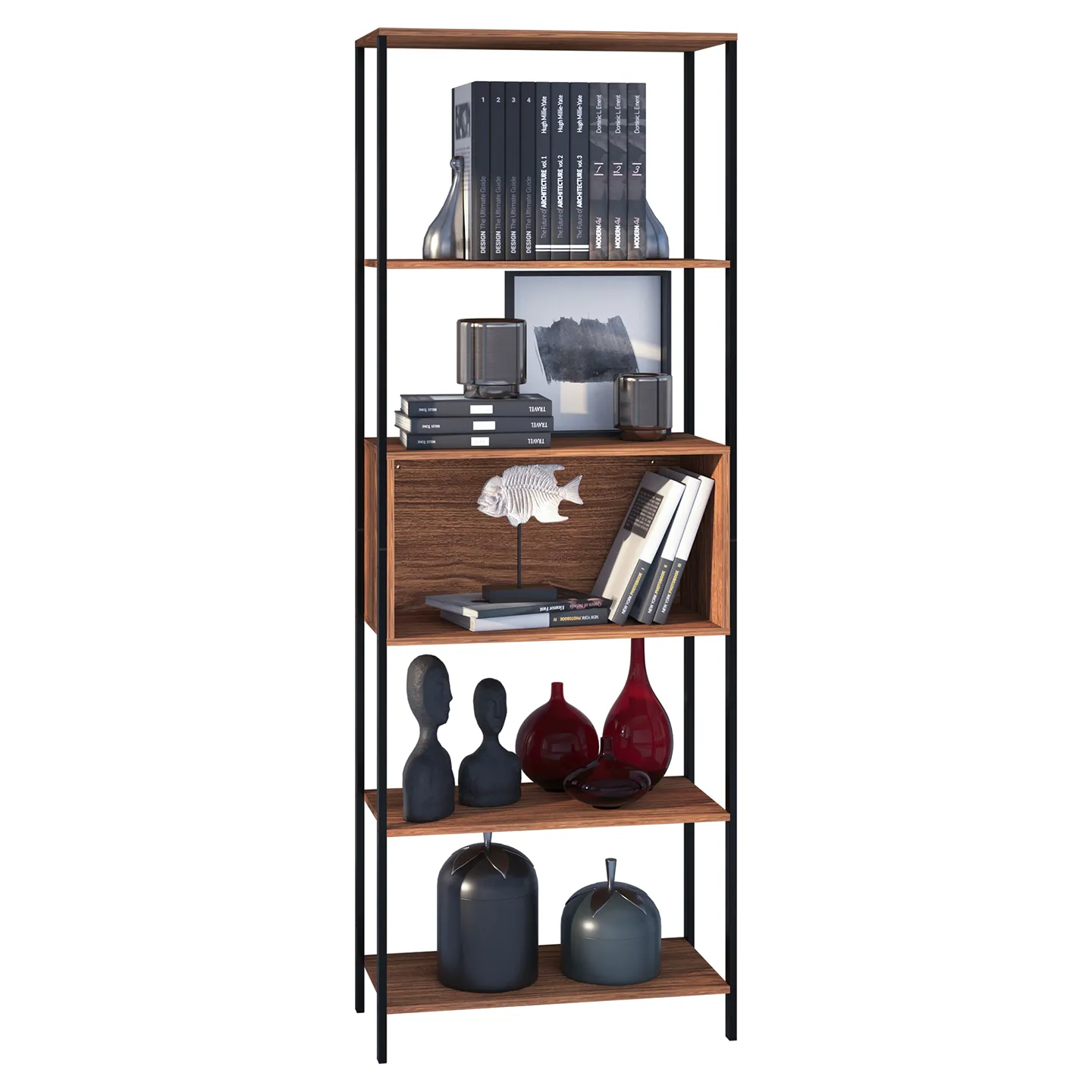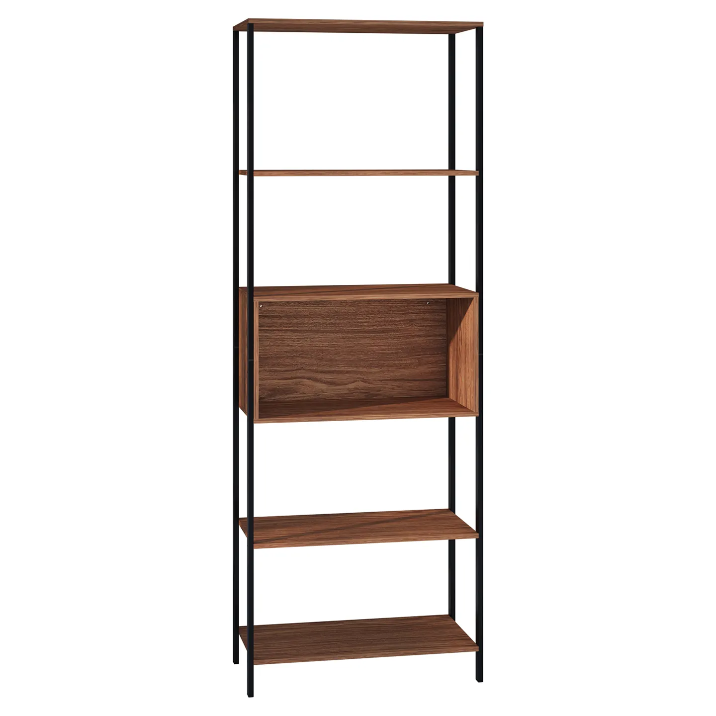 Estante − Montreal. Estante Organizador, Dos Vistas, Un Cajón Reversible Y Cinco Espacios Organizadores, Estructura Metálica y Entrepaños de Madera de Ingeniería