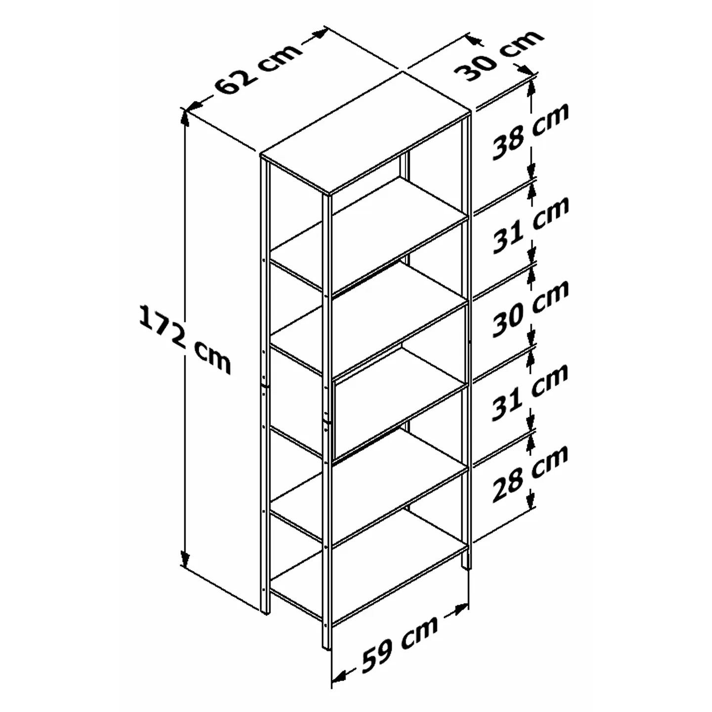 Dimensiones 30 × 62 × 172.4 cm