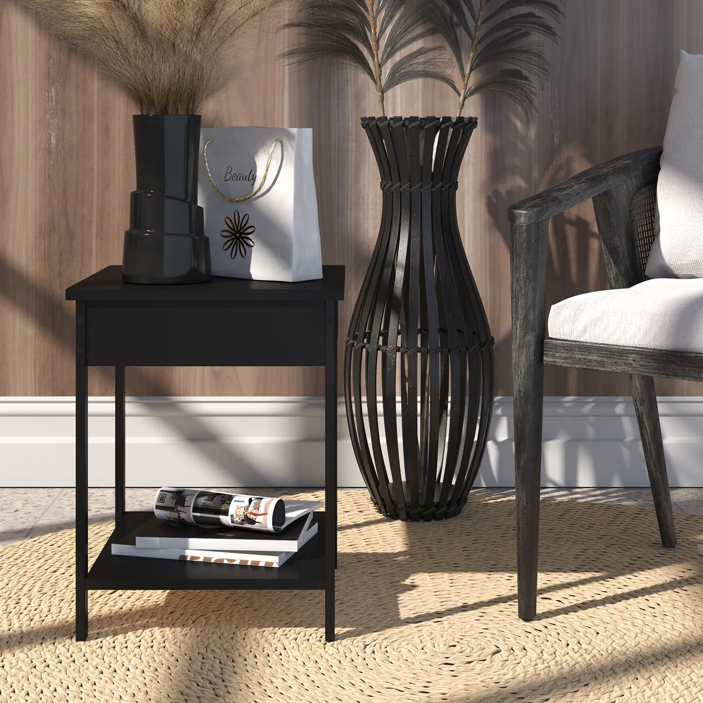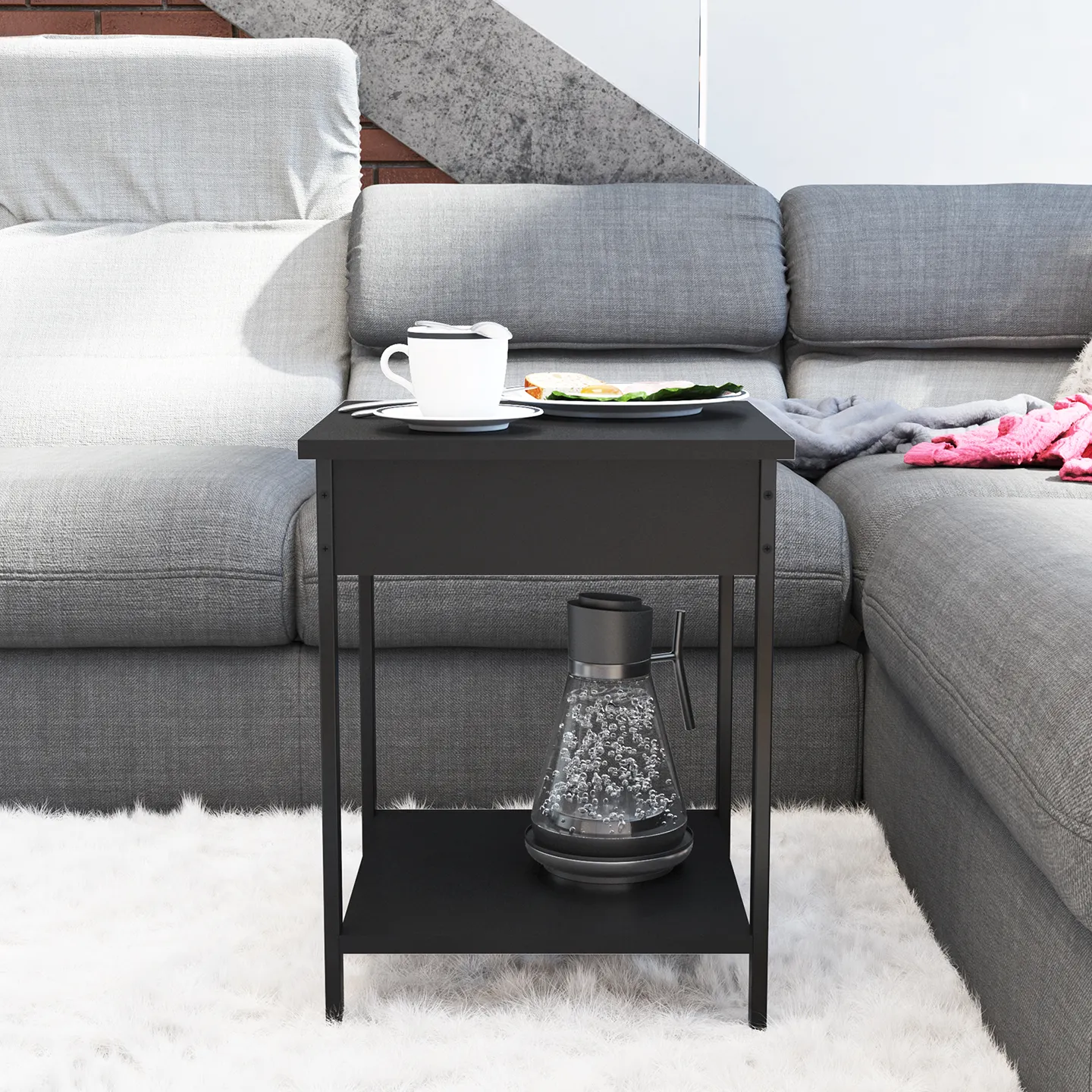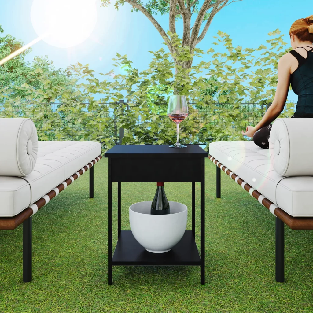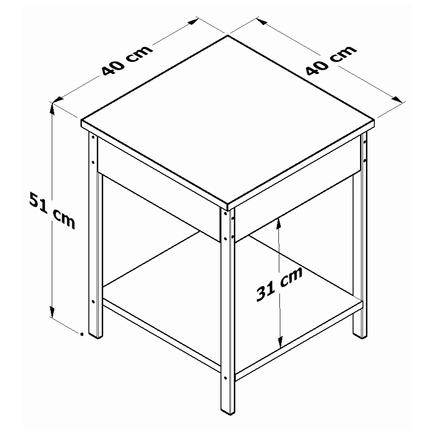 Mesa auxiliar PLAYCON modelo Ibiza en color blanco, diseño compacto con estructura metálica forrada en PVC. Medidas: 51 x 40.2 x 40.2 cm.