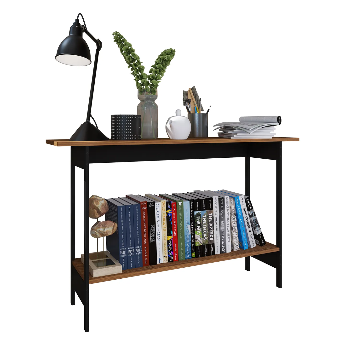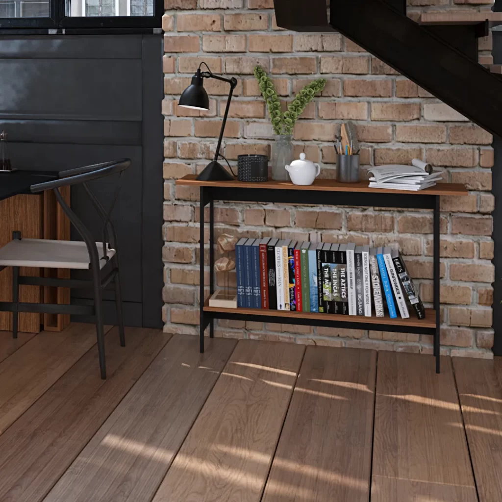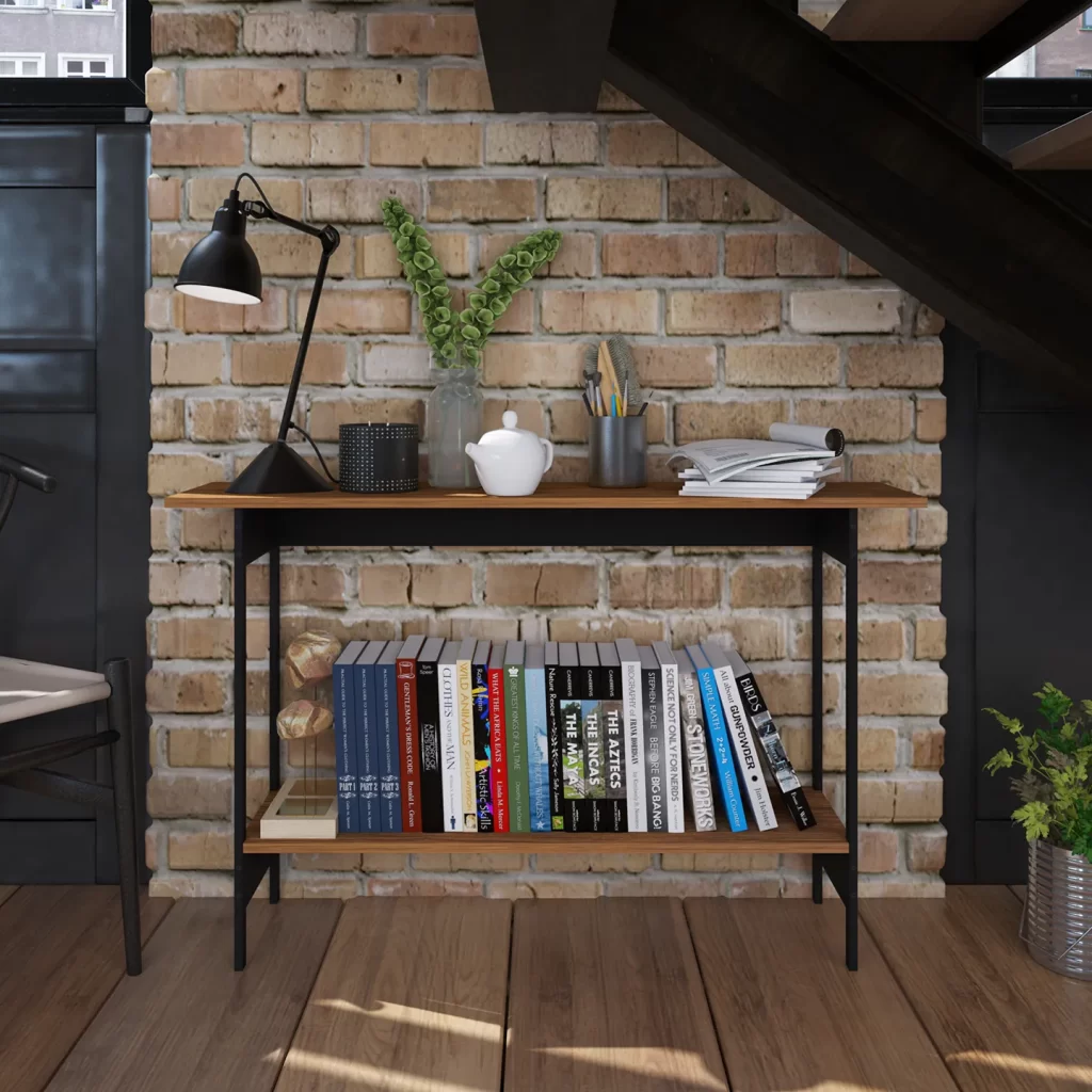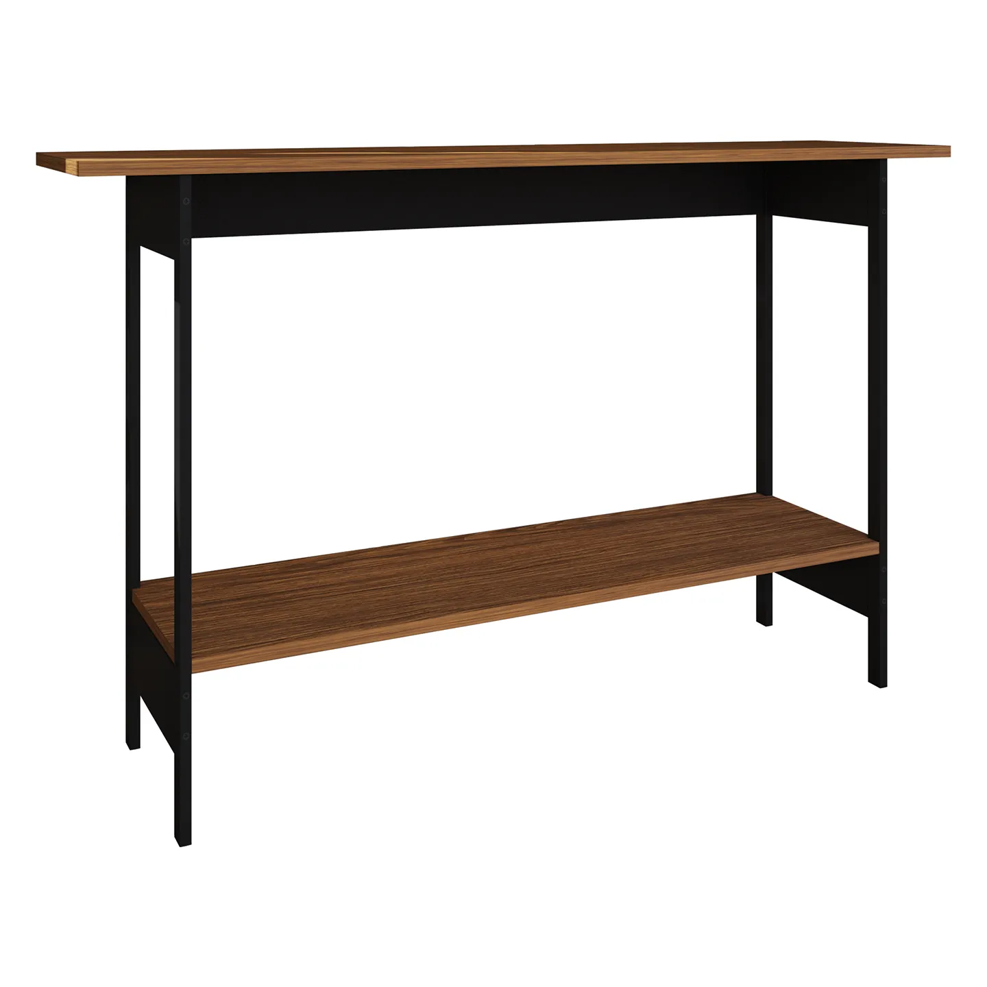 Credenza PLAYCON Oviedo en color tzalam/negro de 120.4 x 30.2 x 75 cm. Diseño moderno con repisa inferior y estructura metálica antioxidante.