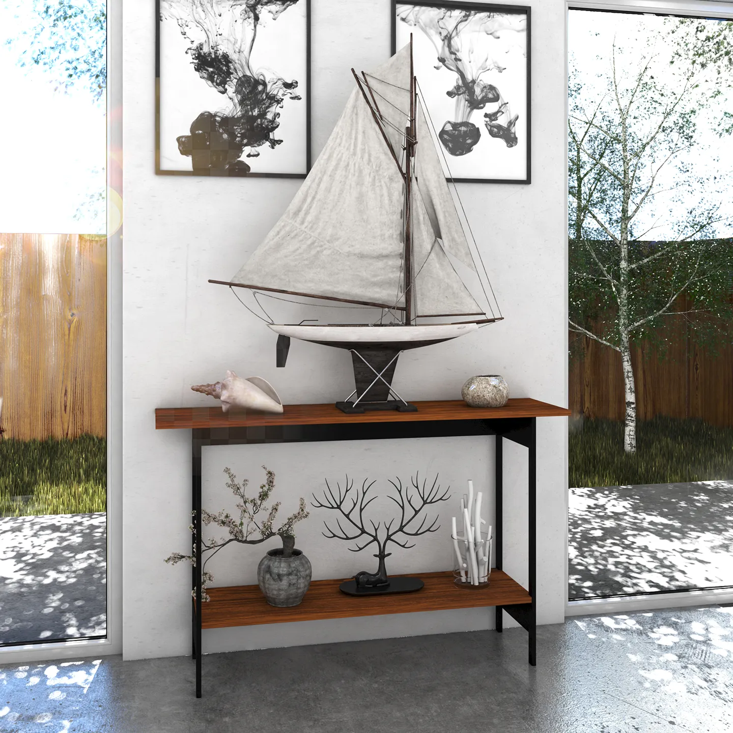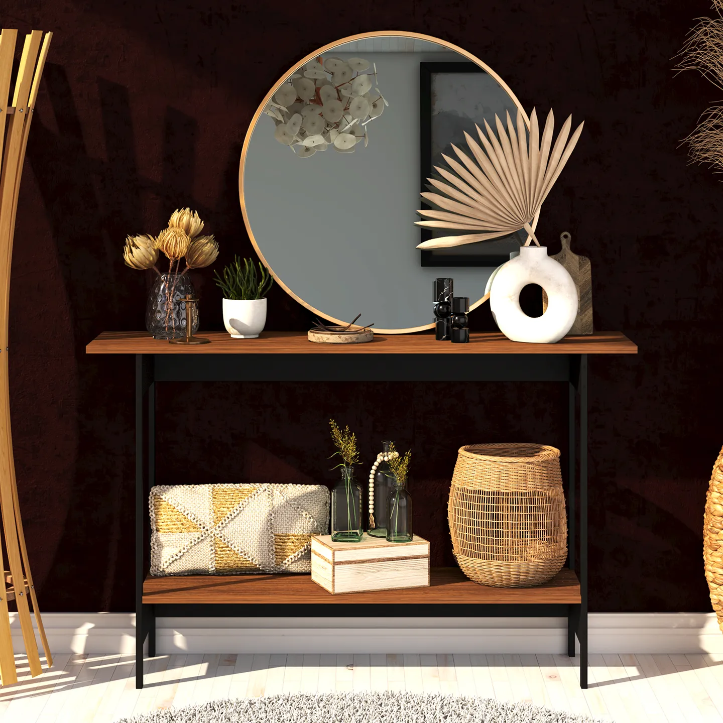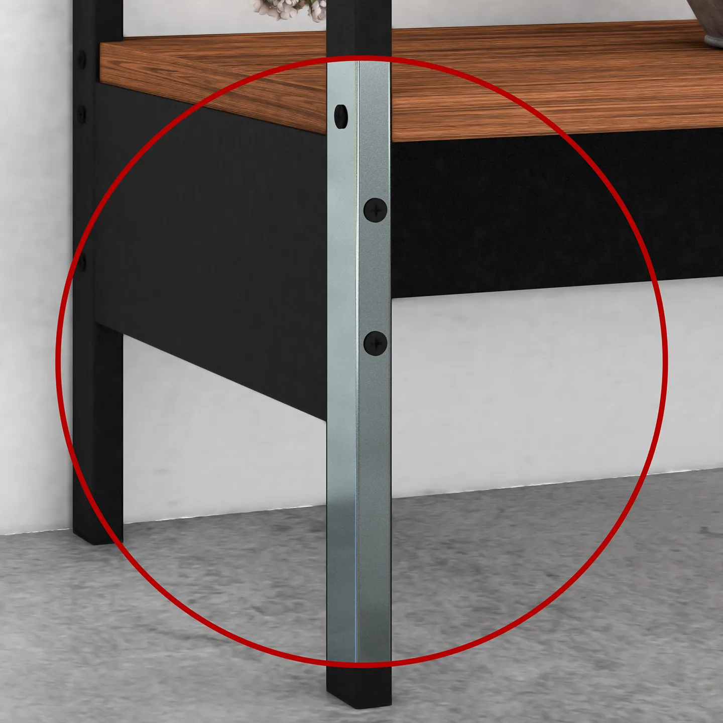 Credenza PLAYCON Oviedo en color tzalam/negro de 120.4 x 30.2 x 75 cm. Diseño moderno con repisa inferior y estructura metálica antioxidante.